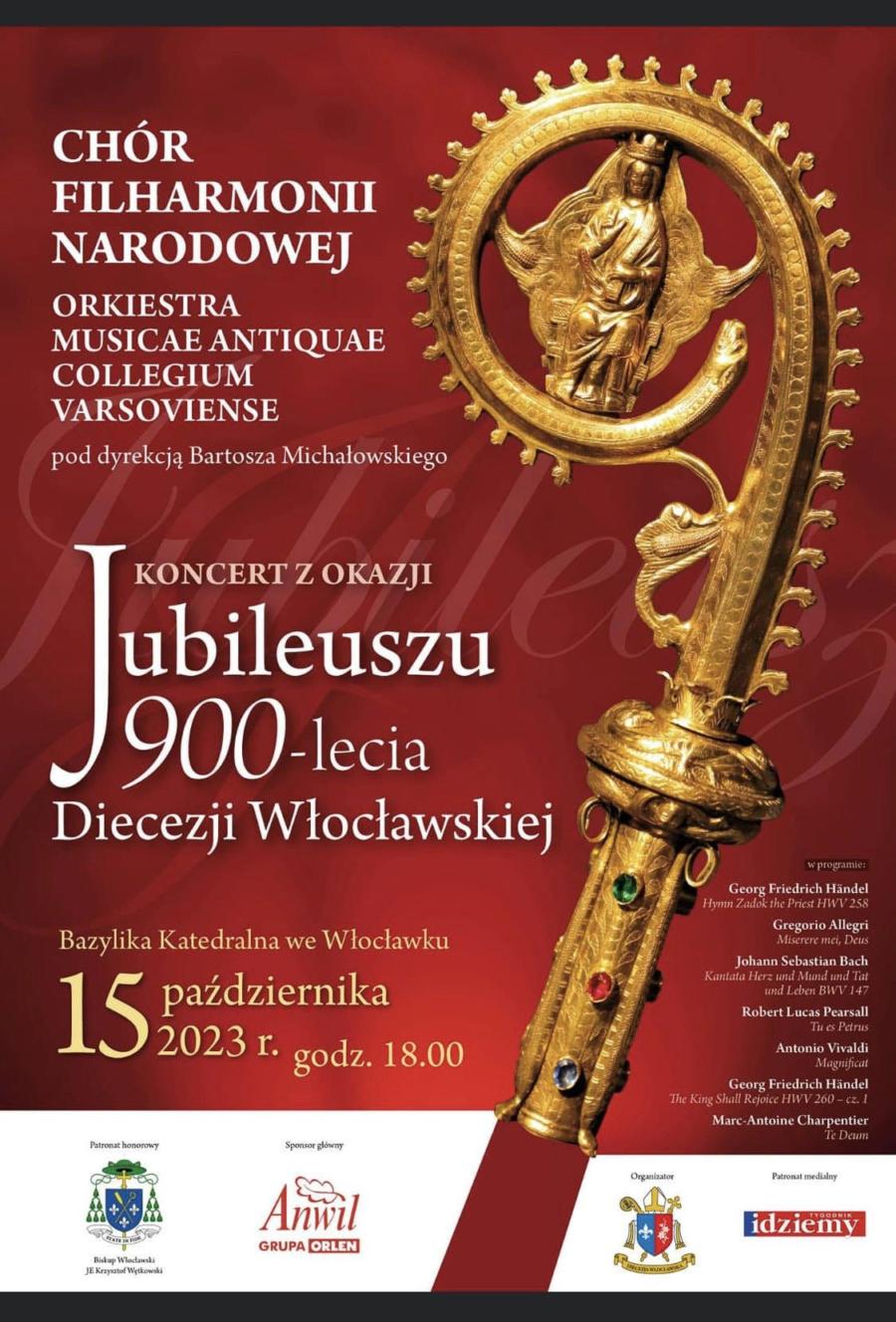 15 października, w nadchodzącą niedzielę o godz. 18.oo w Katedrze, zapraszamy na Wielki Koncert Jubileuszowy w 900-lecie naszej Diecezji; Chór Filharmonii Narodowej z orkiestrą wykonają największe działa muzyczne Bacha, Handla i Vivaldiego. Serdecznie zapraszamy i polecamy to niezwykłe wydarzenie.