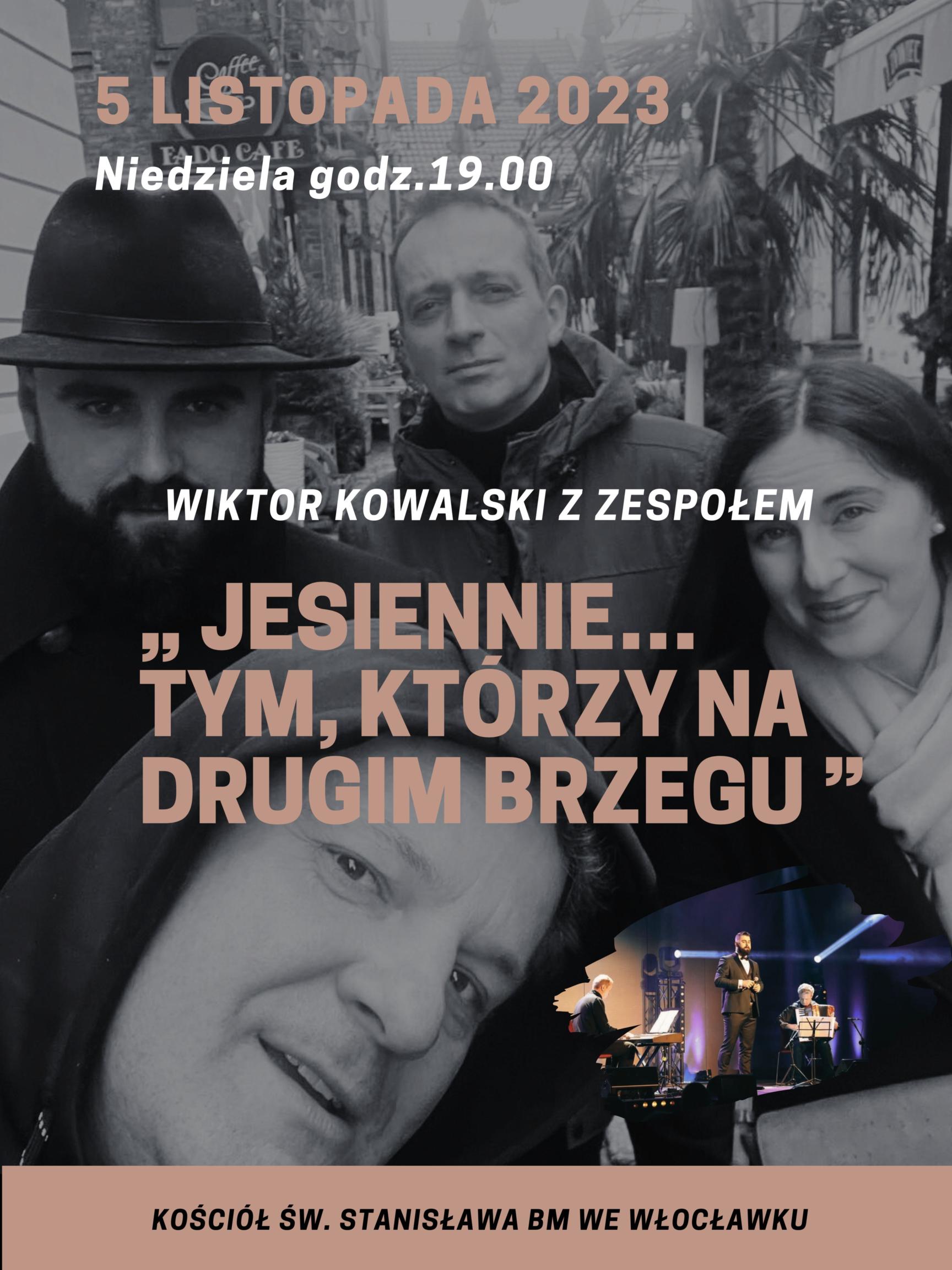Wiktor Kowalski z zespołem. „Jesiennie…Tym, którzy na drugim brzegu”. 5 listopada, niedziela, godz. 19.oo. Kościół św. Stanisława BM we Włocławku. Piotr Matuszkiewicz - fortepian; ks. Sławomir Deręgowski - akordeon; Aleksandra Kowalska - prowadzenie. Zapraszamy.