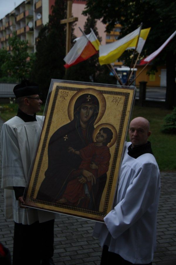 „Nieście Go na cały świat, jako znak miłości Pana Jezusa do ludzkości i głoście wszystkim, że tylko w Chrystusie umarłym i zmartwychwstałym jest zbawienie.”28 maja br., w parafii p.w. św. Piotra i Pawła w Ciechocinku, po słowie gospodarza parafii Ks. Prał. Grzegorza Karolaka, w obecności licznie zgromadzonego duchowieństwa i wiernych, J.E. Ks. Bp Wiesława A. Mering uroczyście przekazał Symbole ŚDM Ks. Prał. Sławomirowi Deręgowskiemu, proboszczowi parafii św. Stanisława BM. we Włocławku. Tym samym peregrynacja Krzyża i Ikony Salus Populi Romani rozpoczęła się w Mieście Biskupim. Mieszkańcy całego Miasta, wspólnoty parafialne, Odnowa w Duchu Świętym, Ruch Światło Życie, Noekatechumenat wraz ze swoimi duszpasterzami, przedstawiciele Rady Miasta, harcerze, przedstawiciele Szpitala i hospicjów powitali Symbole w stanisławowej parafii - pod przewodnictwem Księdza Biskupa Diecezjalnego, który ofiarnie przewodniczył już trzeciej celebracji tego dnia, dając świadectwo ofiarnej modlitwy w intencji młodzieży naszej Diecezji. Poruszającą homilię wygłosił Ks. Prał. dr Artur Niemira, kanclerz Kurii i koordynator diecezjalny Światowych Dni Młodzieży. Kaznodzieja przywołał najważniejsze fakty z historii Symboli ŚDM i wołał do młodych o otwarcie serc i intelektów na prawdę odkupienia zawartą w Krzyżu Chrystusa; o odwagę w dawaniu świadectwa o Krzyżu, Ewangelii i Osobie Jezusa we współczesnym świecie, który ustami fałszywych proroków kłamiąc - proponuje młodemu człowiekowi wartości atrakcyjne ale przemijające i płytkie. Kaznodzieja zostawił zgromadzonym wiernym apel o przylgnięcie do Krzyża Chrystusa i Matki Odkupicielki – co wywołało bardzo pozytywne poruszenia w momencie adoracji Symboli przez zgromadzoną młodzież przygotowującą się do przyjęcia sakramentu bierzmowania z naszej parafii i całego miasta. W słowie końcowym Ksiądz Biskup Diecezjalny podsumował pielgrzymi dzień i podziękował zgromadzonym w koncelebrze Prezbiterom Miasta za duszpasterską mobilizację i zaznaczył, że to przejęcie się księdza - gwarantuje zainteresowanie i zaangażowanie młodych i dzieci – to posługa niełatwa ale jest powołanie każdego duszpasterza. Po Eucharystii Apel Jasnogórski poprowadził Ks. dr Marcin Idzikowski, dyrektor wydziału katechetycznego Kurii biskupiej – zjednoczył wszystkich zgromadzonych na modlitwie maryjnej i uścisku dłoni zebranych zawiązał wspólnotę adoracyjną. Całemu przebiegowi modlitw towarzyszył zespół animujący śpiew i muzykę z parafii św. Stanisława pod kierownictwem ks. Mateusza Kulińskiego i p. Jacka Deręgowskiego, organisty.Następnie rozpoczęliśmy czuwanie pod Krzyżem z przewodnictwem diakonii z parafii św. Maksymiliana, w którym wybrzmiała potrzeba poszukiwania Krzyża Chrystusa przez współczesną młodzież i ucieczka w ramiona Matki Nieustającej pomocy.Diakonia z parafii Ducha Świętego w Michelinie modlitwą objęła wszystkie stany, grupy i wspólnoty współtworzące rzeczywistość dzisiejszego świata – konieczność modlitwy za siebie wzajemnie, umiejętność przebaczenia i poszukiwania wspólnego języka, była głównym nurtem rozważań przeplatanych kanonami śpiewu.Około północy ostatni adorujący opuścili świątynię, by wraz ze swoimi katechetami powrócić jeszcze przed południem 29 maja - patronka tego dnia św. Urszula Ledóchowska wdzięcznie przewodniczyła pielgrzymującej młodzieży ze szkół naszego miasta i okolic. Kilkanaście grup młodzieży ze swoimi katechetami i wychowawcami w akcie zawierzenia modliło się pod Krzyżem Chrystusa; oto kilka poruszających świadectw młodych:Gdy krzyż ŚDM miał przybyć do naszej parafii było sporo zamieszania z przygotowaniami i próbami. Wszystko musiało być dopięte na ostatni guzik. Myślałam, że to wszystko przykryje mi to co jest naprawdę ważne, chyba najważniejsze, móc przeżyć to spotkanie wewnętrznie. Z początku rzeczywiście tak to wyglądało, zajęłam się śpiewem, dobrze przygotowaną asystą, wizualnym wyglądem liturgii. Jednak w miarę upływu czasu, coraz mocniejszej siły modlitwy, to co zewnętrzne i drobiazgowe, zaczęło odchodzić na dalszy plan. Poczułam, że zgromadzenie wśród młodych wokół krzyża nie jest przypadkowe. Są to ludzie ambitni modlitewnie. Mnie też zaczął przepełniać wewnętrzny spokój i swego rodzaju ukojenie. Nie dziwię się, że na ŚDM gromadzi się tylu młodych. Liturgia, podczas której był obecny krzyż, była mocnym wewnętrznym przeżyciem, dzięki któremu mam nadzieję, że za jego wstawiennictwem i przynależnością do tej wspólnoty będę mogła iść poprawną drogą, która doprowadzi mnie do spotkania z Bogiem. Magdalena Spotkanie z krzyżem ŚDM było dla mnie wyjątkowym doświadczeniem i przeżyciem duchowym. Możliwość modlitwy w duchu ŚDM pozwoliła mi wejść w głąb samego siebie, w swój stan ducha, rozmodlenia. Dzięki obecności krzyża w naszej świątyni, energii płynącej z obecności młodzieży, śpiewów pieśni, które spotykamy na ŚDM, mogłem przeanalizować to jak się modlę i czy jestem wystarczająco blisko Boga. Dzięki temu zauważyłem, że dużo mi brakuje, że dość znacząco opuściłem się w swojej wierze. Przed uroczystością postanowiłem sobie, że chciałbym, aby to spotkanie pozwoliło mi odnaleźć to, co zagubiłem w ostatnim czasie. Myślę, że udało mi się to osiągnąć. Do pełni szczęścia brakuje mi oczyszczenia sumienia poprzez sakrament pokuty i to właśnie spotkanie z krzyżem ŚDM dało mi swego rodzaju duchowego kopa i przepełniło energią do tego, aby wziąć się za siebie i wrócić na właściwe tory.Damian Dziś do naszej świątyni przybyły symbole ŚDM. Krzyż i Ikona Matki Bożej podarowane przez świętego już Jana Pawła II w 1985r. młodzieży z całego świata. Poprzez chwilę adoracji krzyża, czuwani